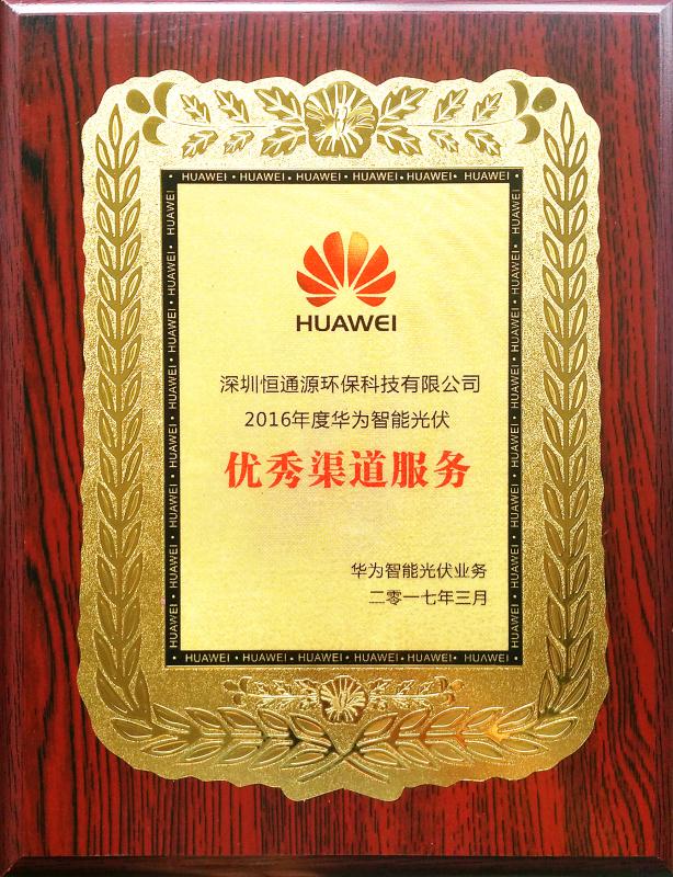 作為華為智能光伏電站解決方案的授權經銷商,深圳恒通源榮獲“2016年度華為智能光伏優秀合作伙伴”與“2016年度華為智能光伏優秀渠道服務”獎項,再次彰顯了恒通源不斷深入技術創新的雄厚實力。